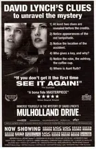 Movie Times Tickets;. High resolution official theatrical movie poster (#1 of 4) for Mulholland Drive (01) Image dimensions 00 x 3000 Directed by David Lynch Starring Naomi Watts, Laura Harring, Ann Miller, Dan Hedaya. Buy It Now C $1494 shipping;.