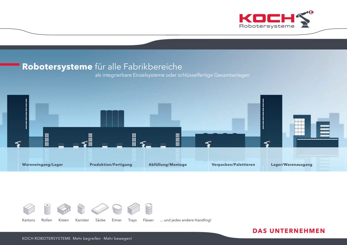 Robotersystemecom The uniform appearance of the KOCH runners in company clothing specially produced for the competition said it all just as we achieve our common goals in the firm by working closely together as a team, our "red squad" stuck together before, during and after the run too. Die KOCH Industrieanlagen GmbH ist ein hoch spezialisiertes RoboterSystemhaus mit mehr als 40 Jahren Erfahrung auf dem Gebiet der Fabrikautomation und über 25 Jahren Erfahrung mit Robotersystemen. ROBOT SYSTEMS FOR ALL FACTORY AREAS AS INTEGRABLE INDIVIDUAL SYSTEMS OR COMPLETE TURNKEY SYSTEMS KOCH Industrieanlagen GmbH is a highly specialised robot systems house with over 40 years’.