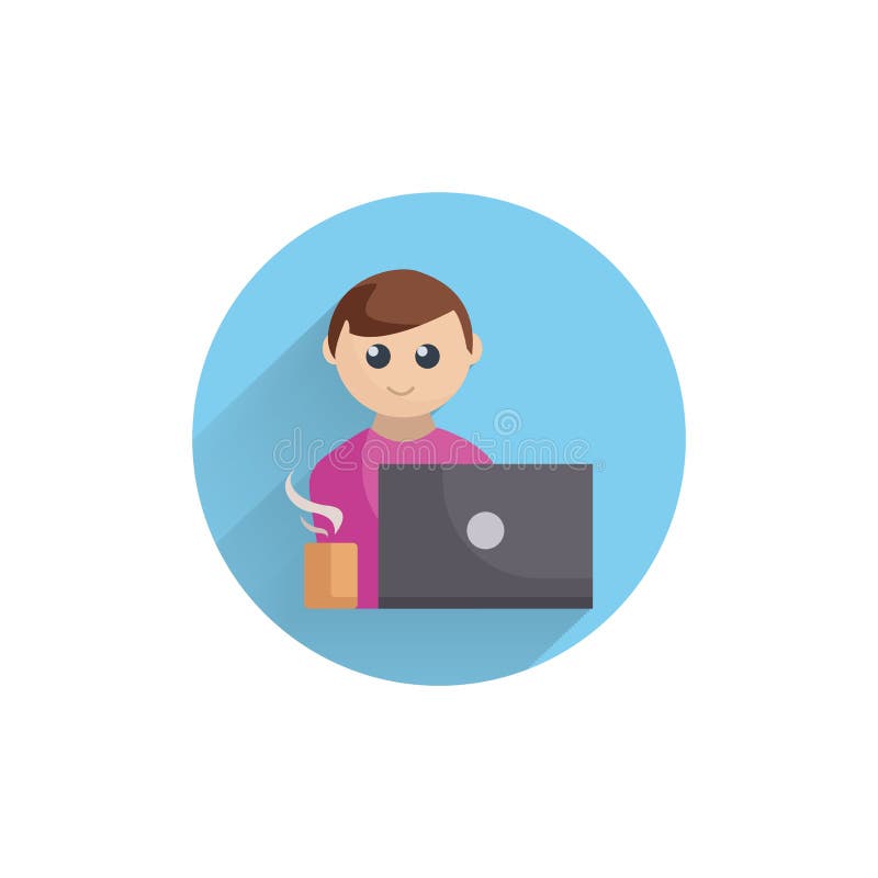 Work On Laptop Icon Workplace Cute Cartoon Adult Man Working On Computer Freelancer Character Concept Symbol Design Supporter Stock Vector Illustration Of Desk Laptop