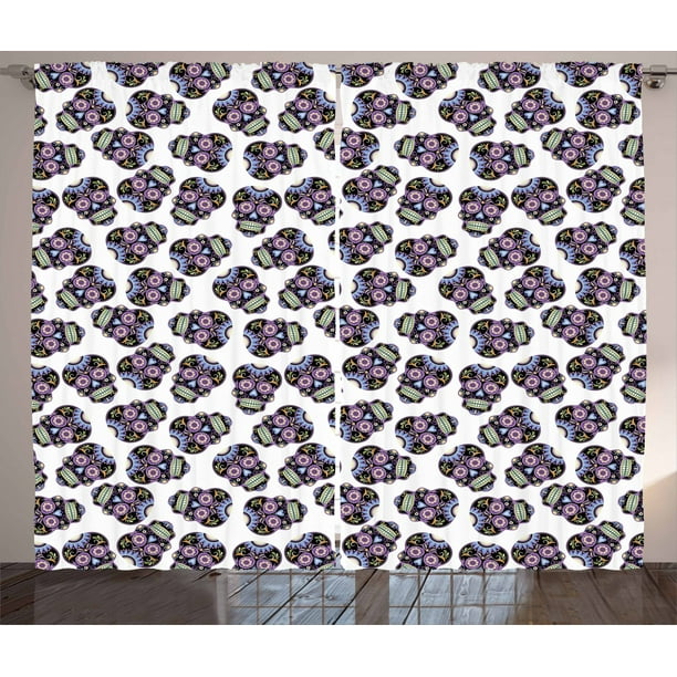 Sugar Skull Curtains 2 Panels Set Cultural Symbols For Dia De Los Muertos Concept Floral Skulls