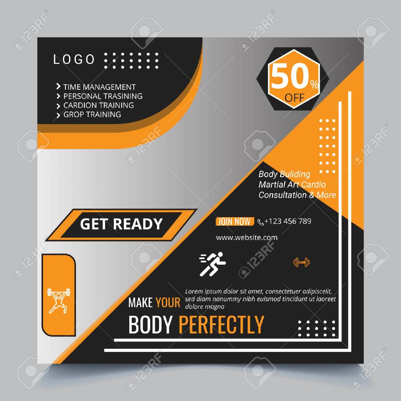 Health And Fitness Social Media Post Template Design Royalty Free Cliparts Vectors And Stock Illustration Image