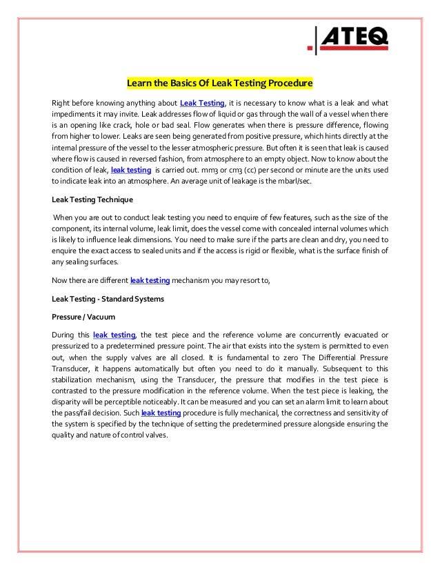 Learn The Basics Of Leak Testing Procedure