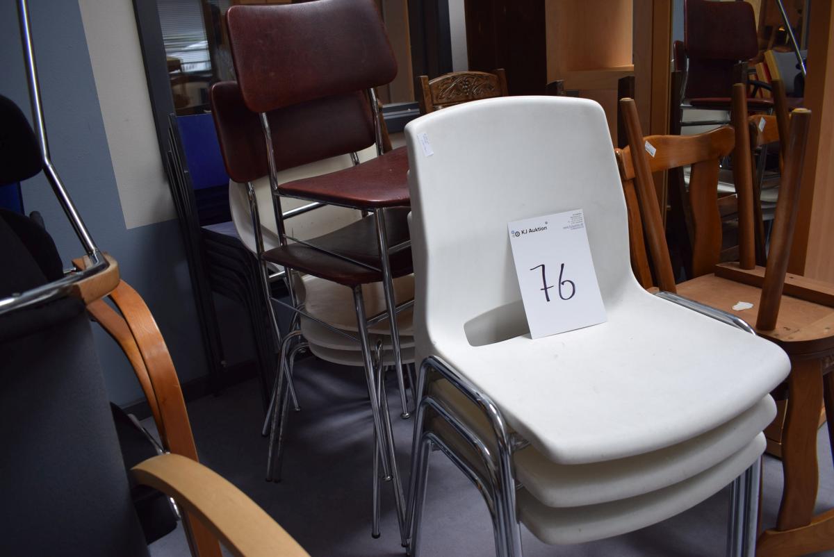 4 Stk Blaue Stuhle 3 Tlg Stuhle Weiss 2 Stuhle Aus Braunem Leder 3 Stk Weissen Plastikstuhle Kj Auktion Maschinen Auktionen