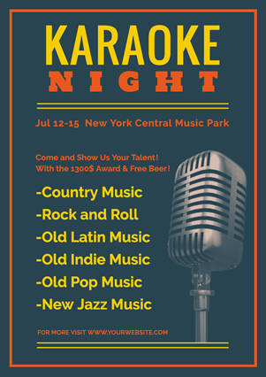 Karaoke night invitations start as low as $6, so even if you're on a budget you can still get a unique and creative karaoke night invitation!. Karaoke is a long standing bar tradition Have your customers singing your praises on karaoke night with this Pub Karaoke Flyer from MustHaveMenus The faint yellow background and sound studio microphone graphic with the young singer provides a great back drop for your karaoke night advertising. Karaoke Star Flyer / Poster is Adobe Photoshop Print Template Great to promote karaoke night in your club and other events You can use it in both personal and commercial projects All my Flyers / Poster Templates are.