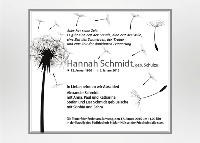 S 15 Pusteblume Fur Traueranzeigen Und Trauerkarten Den Tod Anzeigen