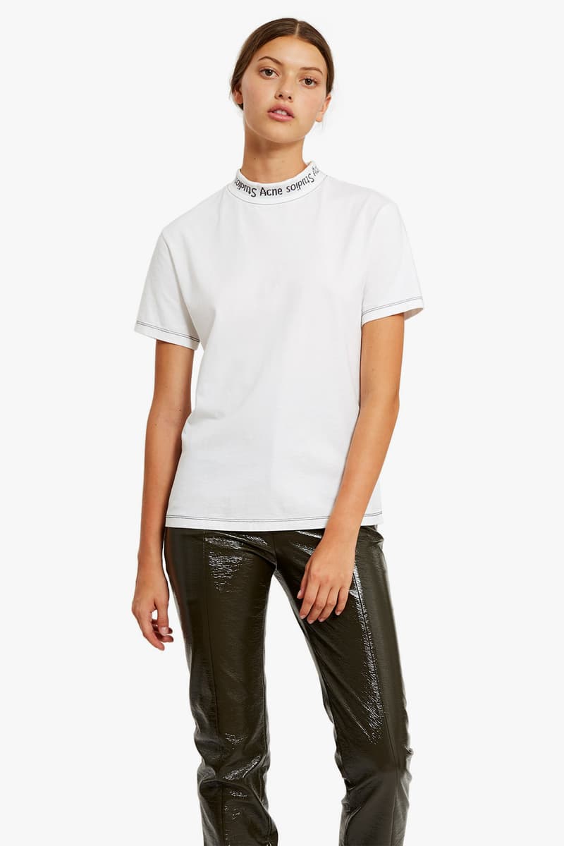 Acne Studios White Logo Neck T Shirt The Fashionisto