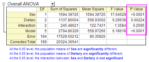 INTERPRETING THE ONEWAY ANOVA PAGE 2 The third table from the ANOVA output, (ANOVA) is the key table because it shows whether the overall Fratio for the ANOVA is significant Note that our Fratio (6414) is significant (p=001) at the05 alpha level When reporting this finding – we would write, for example, F(3, 36) = 641, p. Continuous (scale/interval/ratio) and 2 independent categorical variables (factors) Common Applications Comparing means of a single variable at different levels of two conditions (factors) in scientific experiments. Analysis of variance (ANOVA) is a collection of statistical models and their associated estimation procedures (such as the "variation" among and between groups) used to analyze the differences among group means in a sampleANOVA was developed by the statistician Ronald FisherThe ANOVA is based on the law of total variance, where the observed variance in a particular variable is partitioned.