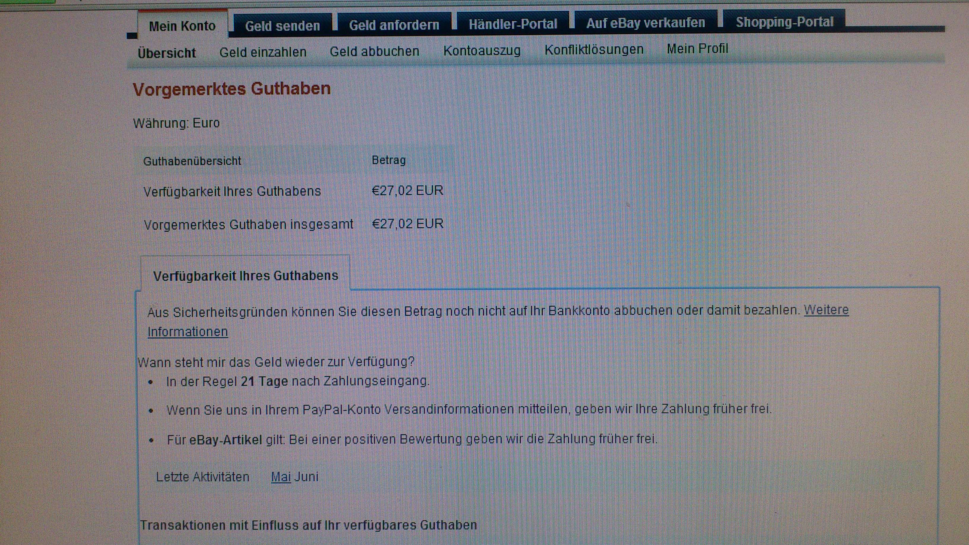 Paypal Wann Bekomme Ich Mein Geld Wieder Vorgemerktes Guthaben Ebay