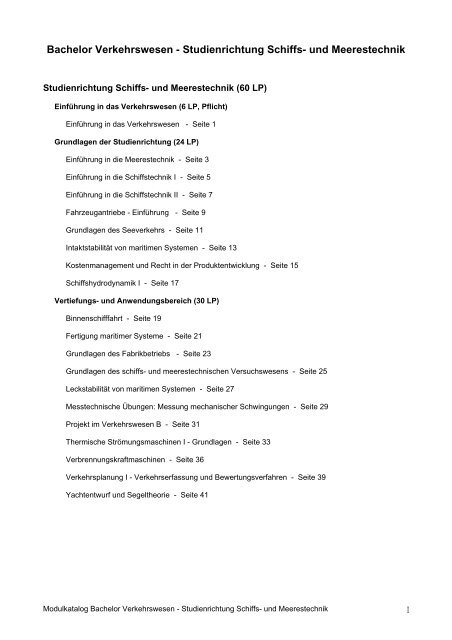 Begleitdokumente Und Studienfuhrer Zum Studiengang Schiffstechnik