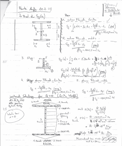 Ich soll das statische Moment S1 bestimmen, wenn man S2 berechnet, dann funktioniert das ja durch Int (x* f(x) ) In diesem Fall setzte ich dann y in meine Funktionen ein, jedoch ist x gleich y und es kommt nicht 2333 raus. Außer den schon bekannten Größen lediglich noch das statische MomentS(z) für den jeweils vorliegenden Balkenquerschnitt zu berechnen Für z = z o verschwindet die Stirnfläche des Elements, so daß S(z o)=0ist Für z = z u (untere Kante des Balkens) ist S(z u) gleich dem statischen Moment der gesamten Querschnittsfläche;. Berechnung einer Holzstütze Baupläne und Bauanleitungen für Holzbauprojekte finden Sie hier !!!.