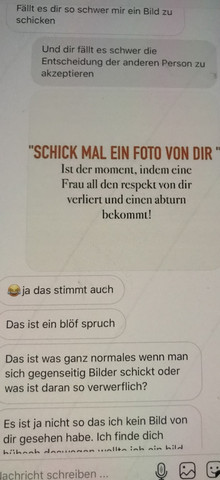 Schick Mal Ein Foto Von Dir Ist Der Moment In Dem Eine Frau All Den Respekt Vor Dir Verliert Und Einen Abturn Bekommt Visual Statements