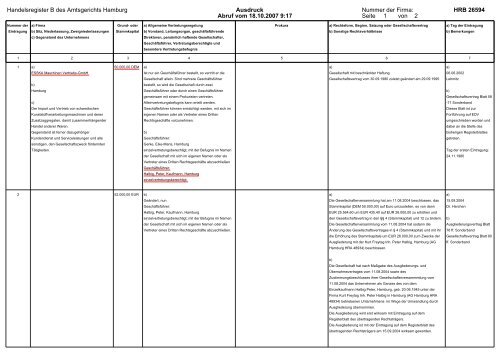 226, Hamburg (Germany), and is entered in the commercial register at the Hamburg district court, HRB 981. Handelsregisterauszug vom Amtsgericht Duisburg GmbH Gesellschafter – Wo bekommt man Infos?. HandelsregisterauszugImpressum FSKoeln UG (haftungsbeschränkt) Am Lindenweg 72 Köln Fax 49 221 1653 5521 Email info@fskoelnde , info@ehandelsregisterauszug.