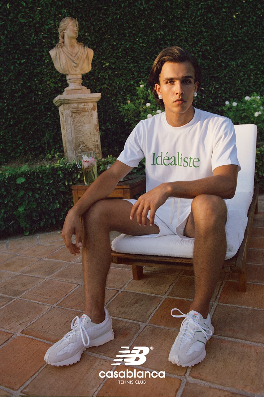 New Balance x Casablanca 327 "Idéaliste" Register Now on END Launches A representation of Charaf Tajer's idealistic vision of the world, Casablanca team up with New Balance to deliver a modernised '70s footwear style brimming with the brand's signature aprèssport outlook Effervescent with their elegant embodiment of beauty in contemporary menswear, Charaf Tajer's Casablanca team up with American footwear stalwarts, New Balance, to deliver a Mediterranean vision of the '70s 327. Casablanca x New Balance’s 327 “Idéaliste” sneakers are slated to drop on September 12, via online raffle on the Parisian label’s website for $150 USD a pair For more footwear collabs, check out New Balance’s Pro Court Cup kicks created with COMME des GARÇONS HOMME 1 of 6 New Balance 2 of 6 New Balance. 327 casablanca "idÉaliste" green back to top 327 casablanca "idÉaliste" green 確認 new balance 327 casablanca "idÉaliste" green sku ms327cbd.