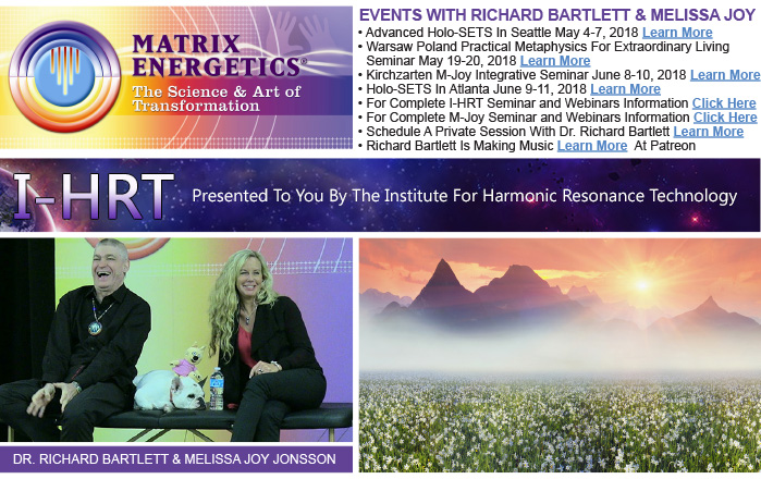 Born from a set of potent energetic treatments that Bartlett discovered in his chiropractic practice, Matrix Energetics has evolved into a “technology of consciousness” for insight, healing, spiritual growth—and living a life unbound by the limits we have been trained to believe in. Matrix Energetics sometimes appears magical in its expression but is based on the laws and expression of subtle energy physics and the concepts and laws of quantum physics, superstring theory and Sheldrake’s Morphic Resonance Matrix Energetics is a complete system of healing, selfcare and transformation. Matrix Energetics encompasses a new state of mind, a new way of looking at the world we live and breathe in, and a new way of reaching out to new possibilities, a consciousness shift Click here for interview of Ralph and Jen Havens interview about Matrix Energetics.