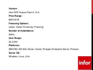 Today’s enterprise resource planning (ERP) solutions are agile, secure, and datadriven systems that play a critical role in cloudbased, digital businesses Businesses of all sizes use ERP systems to manage daytoday business activities, such as procurement, project management, operations. A Baan szoftver megvásárlása után az SSA átnevezte a Baant SSA ERP Lnre 05 augusztusában az SSA Global kihozta a szoftver új verzióját, melynek neve SSA ERP LN 61 lett 06 májusában az SSAt megvásárolta az atlantai Infor Global Solutions, amely egy vezető ERP rendszer forgalmazó a piacon. Because the BAAN IV architecture includes both the BAAN IV software and a thirdparty relational database management system (RDBMS), the driver is needed to provide a seamless interface between the BAAN IV software and the different RDBMS products The database driver allows the majority of BAAN IV’s processing to be independent of the RDBMS.