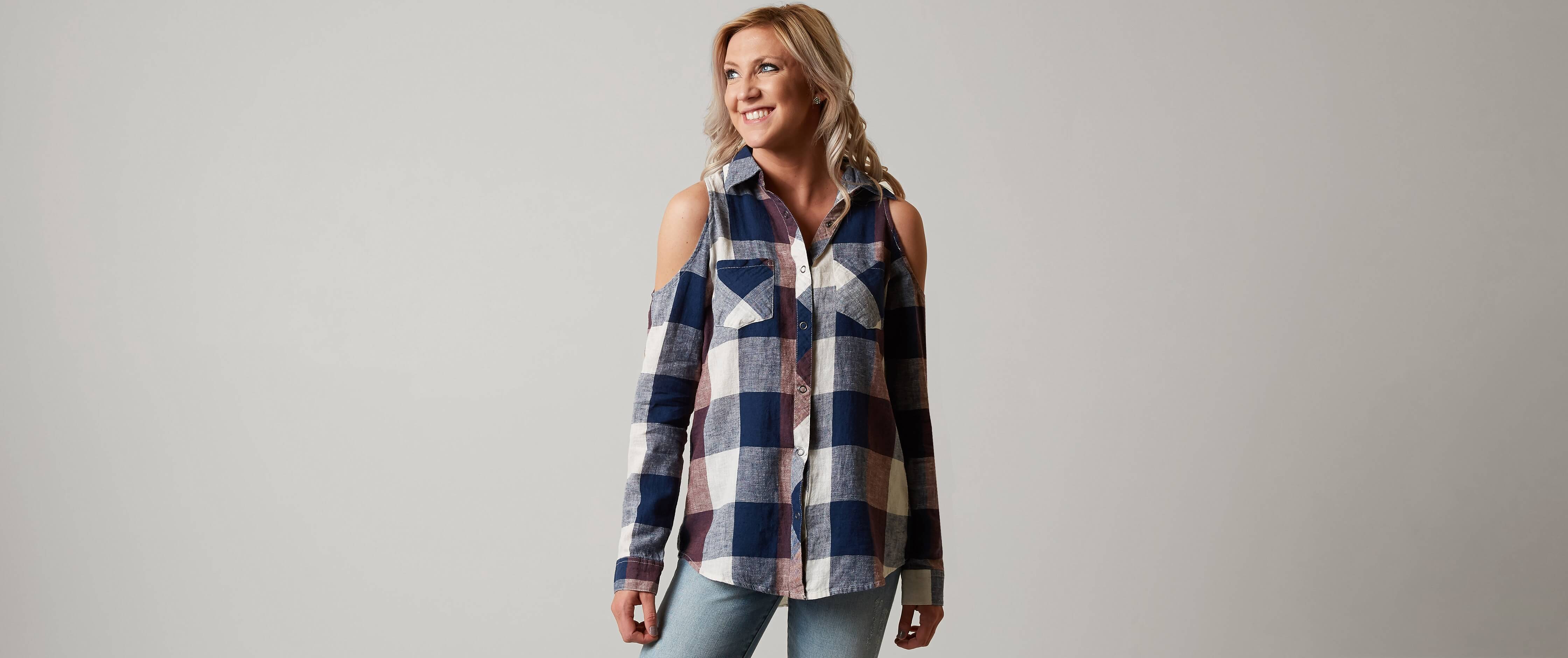 Ny C Cold Shoulder Plaid Soho Soft Shirt