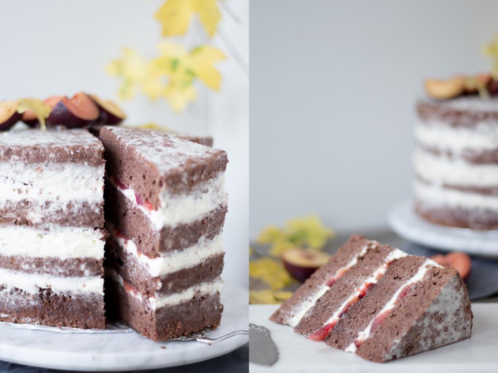 Saftige Schokoladen Torte Mit Topfen Sahne Fullung Und Pflaumen Julia Bakes