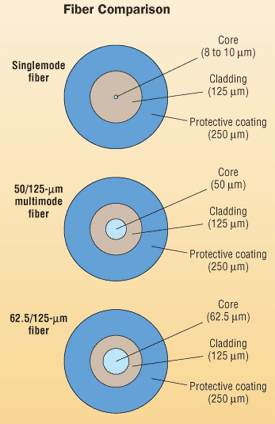 Dimensions of single mode/multimode fiber In single mode optic fiber cable, coretocladding diameter is about 9 microns by 125 microns In multi mode optic fiber cable, coretocladding diameter is about 50 (or 625) microns by 125 microns The figure depicts the fiber optic cable and mentions the core and cladding portions. The equipment used for communications over multimode optical fiber is less expensive than that for singlemode optical fiber Typical transmission speed and distance limits are 100 Mbit/s for distances up to 2 km (100BASEFX), 1 Gbit/s up to 1000 m, and 10 Gbit/s up to 550 m. Single mode fiber provides users with a greater transmission rate in addition to nearly 50 times longer distance as opposed to multimode fiber In this regard, single mode fibers will require single mode transmitters which use solidstate laser diodes The cost of this transmitter equipment may be 5 or 6 times more than that of multimode equipment.