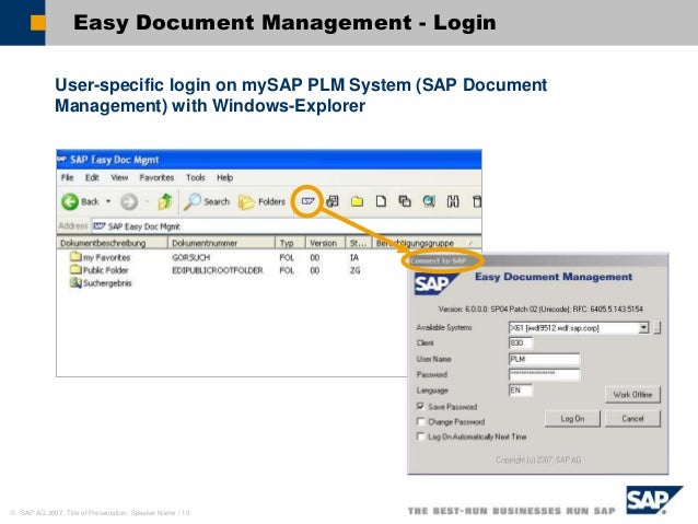 PLM Document Management System (DMS) SAP Easy Document Management 6 Comments 5 Likes Sammar Razdhan posted on February 18, Personal Insights Importance of Soft Skills in SAP Consulting I have been in SAP Consulting world for 12 years, I feel that we need to emphasize more on the soft skills of candidates Given that the project. Learn about SAP easy access menus, toolbars and screen features as well as tips for getting around easy window which contains a list of connections that can be named and organized into folders and subfolders for easier management SAP Logon Window This data for the document header is valid for the entire document. The SAP Download Manager is a freeofcharge tool that allows you to download multiple files simultaneously, or to schedule downloads to run at a later point in time Software found in your download basket is visible in the SAP Download Manager Note that to download software the Software Download authorization is required.