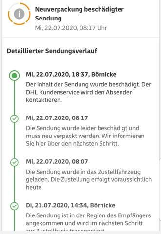 Der Inhalt Der Sendung Wurde Beschadigt Der Dhl Kundenservice Wird Den Absender Kontaktieren