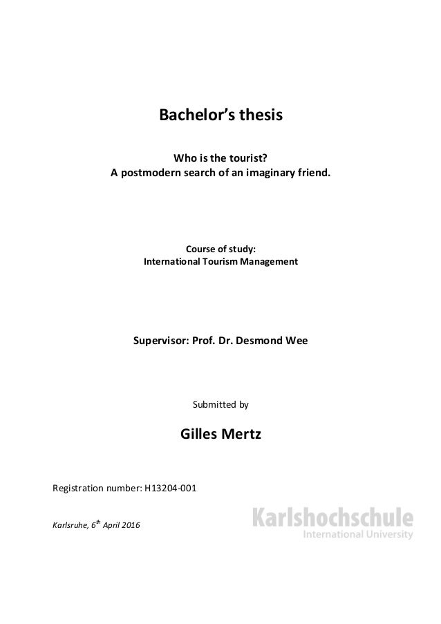 Tourism Topics Bachelor Thesis Topics Implication Of iPhone And Internet Apps In The Travel Industry Factors That Impact Tourists Decision In Traveling To Dark Tourism Website Requirements To Be Placed In A Hotel That Can Be Considered EcoFriendly Eco Tourism Rise Effect To Locales In Certain Area Changing Perceptions Of Tourists About Booking Sites And Online Traveling Marketing Plans That Used In Developing Sales Witch Trials And Other Similar Locations How Hurricanes And Tsunamis Affect. The aim of the bachelor thesis is for students to prove that they are able to reflect on an academic issue independently No more and no less As such, it is not a case of ploughing through as broad a topic as possible, or of inventing something entirely new Quite the contrary in fact in the bachelor thesis, the topic should be clearly defined. Management, Thesis 1 College students keep asking “how do I choose a good thesis topic” Unfortunately, there is usually no straightforward answer to such a question Of course, you always have the usual topics Topics like “The Dangers of Texting While Driving” and “Banning Smoking in Public Areas” are tired and uninteresting.