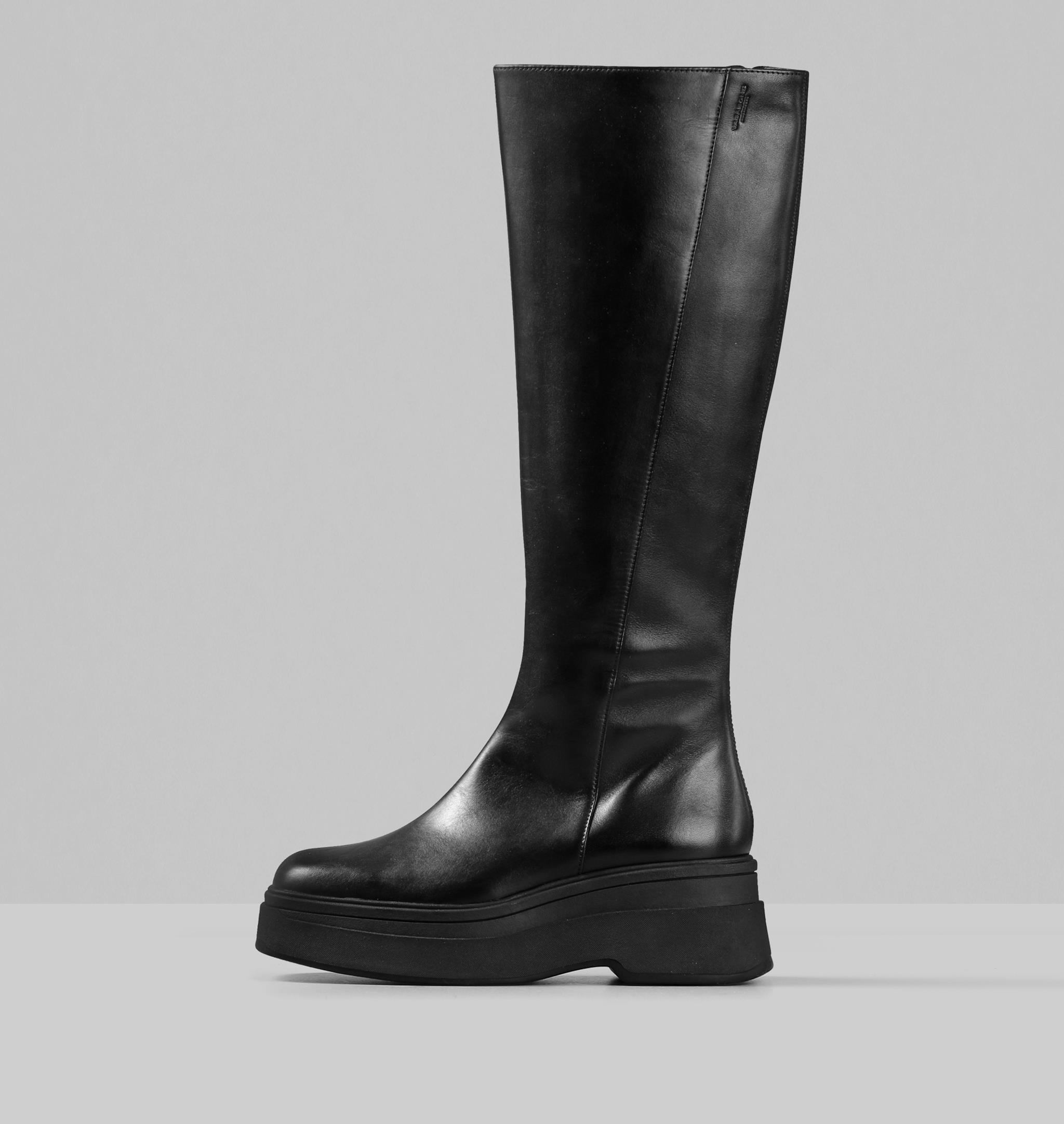 Office Kay Platform Knee Boots Black Leather Knee High Boots