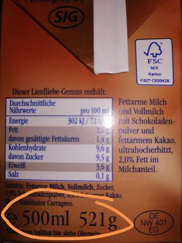 Sind 500 Ml Gleich 521 Gr Oder Sind 21 Gr Die Verpackung Ernahrung Physik Gewicht