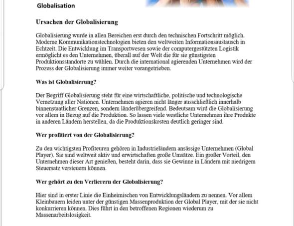 Aspekte Der Globalisierung Auf Der Grundlage Eines Zeitungsartikels Kompetenzorientiert Erschliessen Unterrichtsmaterial Zum Download