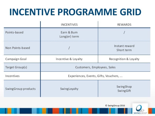 Incentive Program is a specific scheme used to promote certain actions or behavior by a group of people over a defined period of time Incentive programs are used in sales to attract new customers and retain existing customers Rewards associated with Incentive program can be both Monetary Rewards – Cash. Compensation incentives may include items such as raises, bonuses, profit sharing, signing bonuses, and stock options Recognition incentives include actions such as thanking employees, praising employees, presenting employees with a certificate of achievement, or announcing an employee's accomplishment at a company meetingEmployers can offer recognition incentives as part of an overall. Incentive programs are a great concept Give employees something to work for, then watch their productivity soar!.