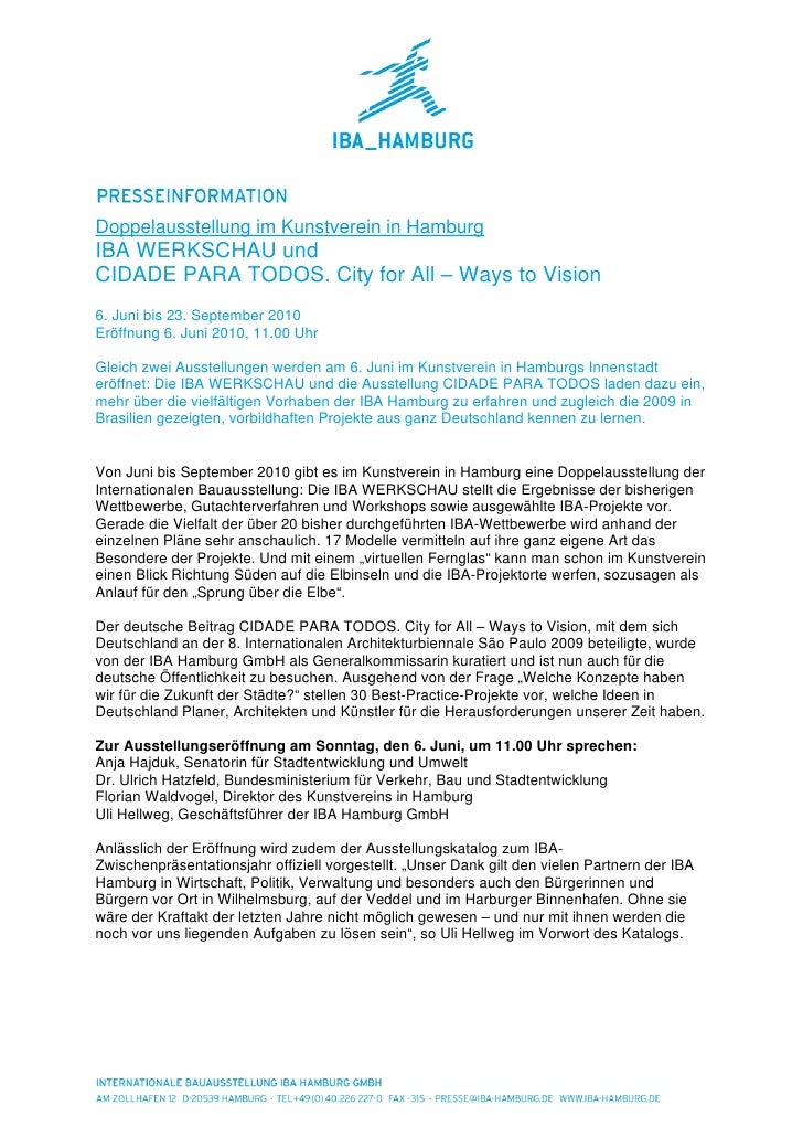 Pressemitteilung Iba Werkschau Im Kunstverein In Hamburg Pdf