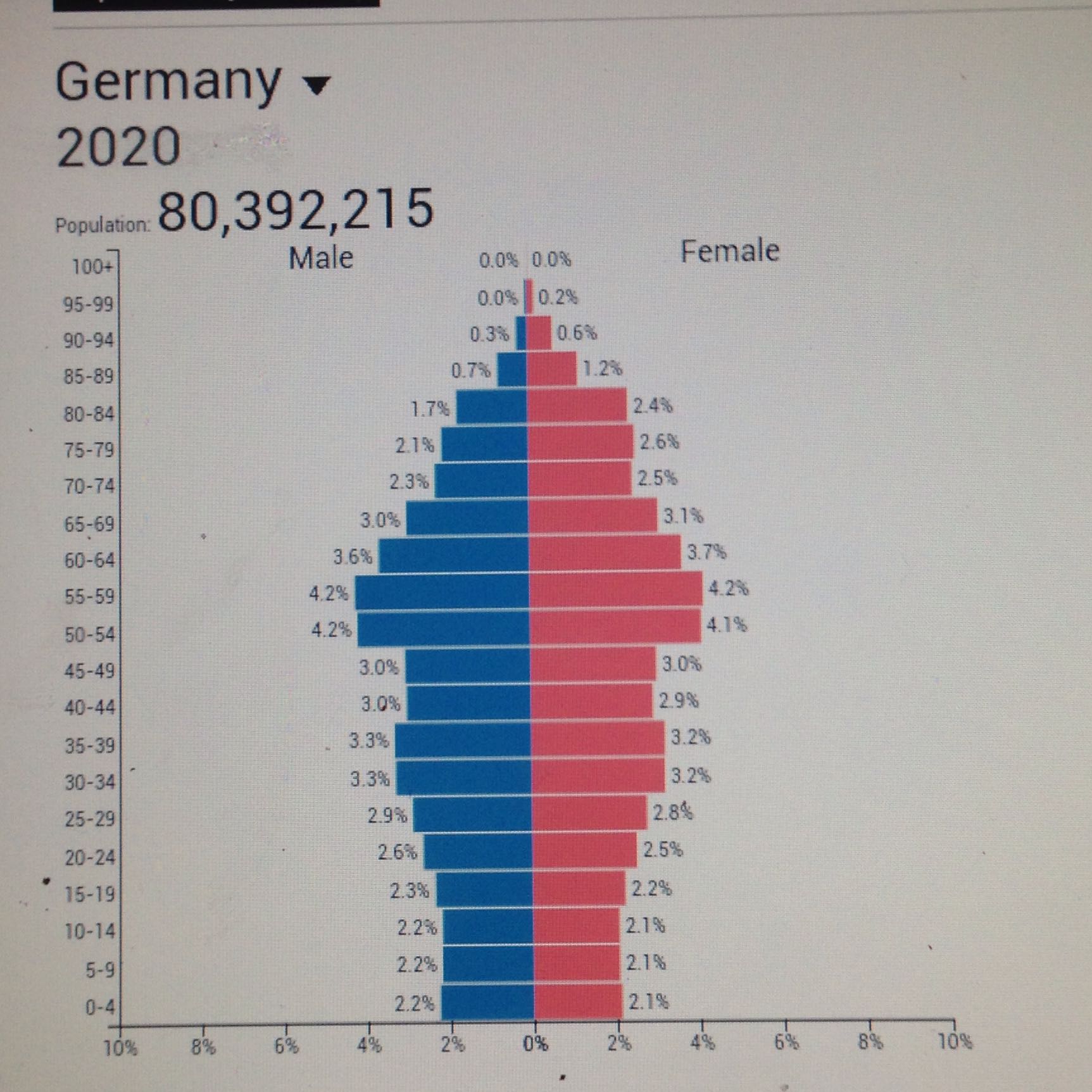 Schlüsselwörter Demografie, Bevölkerungspyramide, Alterspyramide, Altersstruktur, Alterung, Ruhestand, Deutschland, 50 Blog Folge uns auf Twitter Kaufen Sie ein Poster Contact us by email. Deutschland Bevölkerung 21 Für 21 wird erwartet, dass die Deutschland Bevölkerung um Menschen zunimmt und Anfang 22 Einwohner erreicht Die Zahl der Todesfälle wird die Zahl der Lebendgeburten um 6749 übersteigen, so dass ein natürlicher Anstieg im negativen Bereich zu erwarten ist. Die Bevölkerungspyramide (Alterspyramide) des Statistischen Bundesamtes zeigt die Entwicklung der Altersstruktur Deutschlands von 1950 bis 60 14 koordinierte Bevölkerungsvorausberechnung für Deutschland English Daten werden geladen Sollte dieser Hinweis nicht nach wenigen Sekunden verschwinden,.