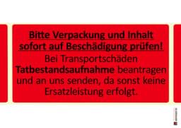 Warnetikett Bitte Verpackung Und Inhalt Sofort Auf Beschadigung Prufen 145 X 70 Mm Rot Mit Schwarzdruck Klormann Verpackungslosungen