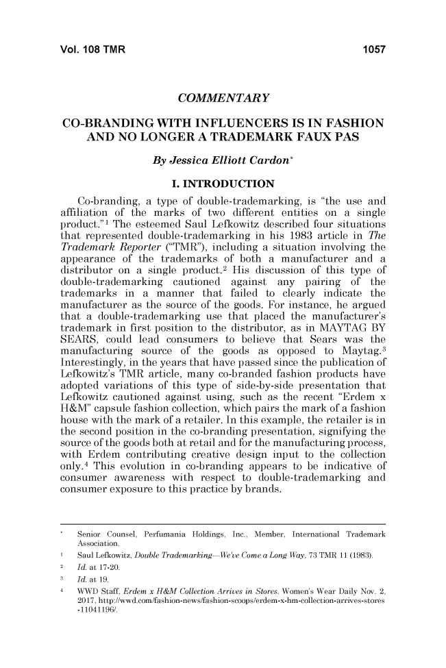 Co Branding With Influencers Is In Fashion And No Longer A Trademark Faux Pas Commentary 108 The Trademark Reporter 18
