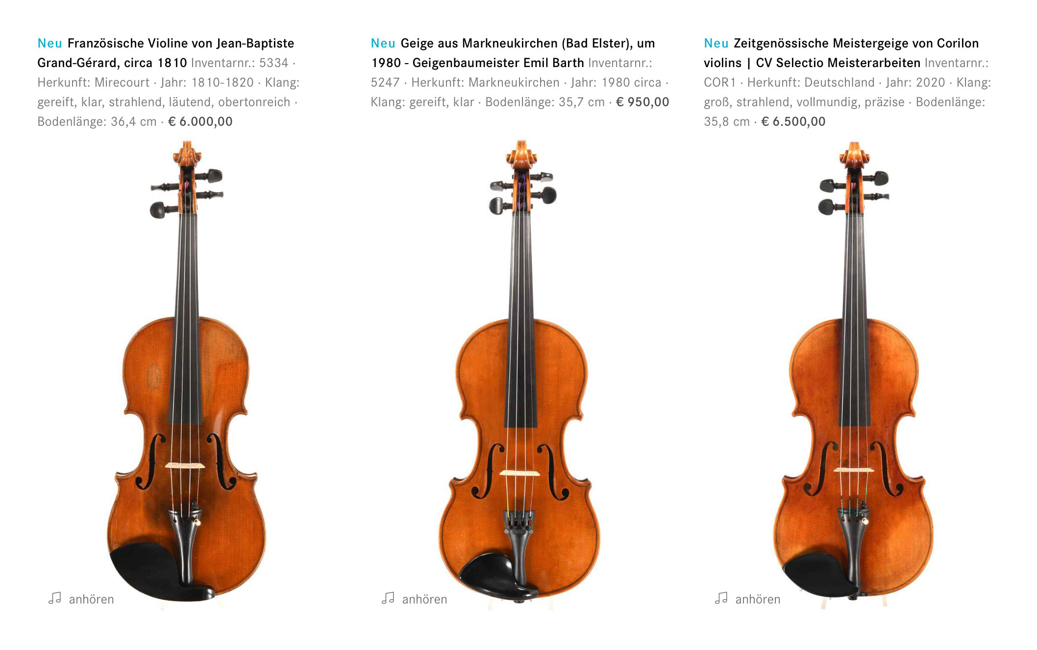 Wenn sich das ändert, mache ich ein Update Wer von Euch eigene Erfahrungen gemacht hat, kann gern einen Kommentar schreiben Corilon Violins ist ein Internethändler mit eigener GeigenbauWerkstatt, und beim Kauf eines Instruments über das Web ist vor allem eins wichtig Vertrauen. I discover Corilon Violins few months ago searching an old instrument for my 9 years old child We needed a 3/4 violin and we have been listening to the samples in the Corilon online shop for two months Then we decided to buy a 1940 Bohemian violin It arrived in a week The violin is very beutiful and its sound has the quality we thought. The Metzler Violin Shop has reopened for walkin sales, rentals and repairs However, we are now requesting that appointments be made for all visits to our Glendale store Please call to schedule an appointment, or use the text widget below Masks must be worn, and social distancing observed.