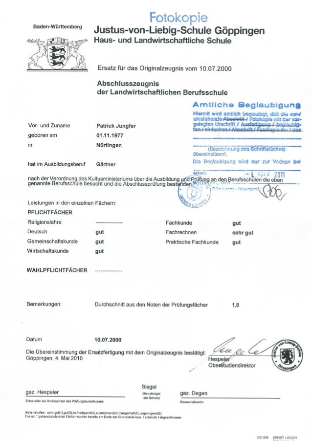 Ausbildung, innerbetriebliche (Organisation) Kurzbeschreibung SchrittfürSchrittAnleitung, welche Aufgaben im Zusammenhang mit einer innerbetrieblichen Ausbildung erledigt werden müssen und worauf als Arbeitgeber zu achten ist Workflow Organisation der Ausbildung im Überblick Dokument in mehr 30Minuten testen. Schlechte Zeugnisse können Ihren Erfolg im Bewerbungsprozess behindern, wenn Sie als Bewerber damit falsch umgehen Denn Schul, Studien und Arbeitszeugnisse haben nach wie vor einen großen Einfluss auf die Entscheidung der Recruiter. Sie wollen ein Abschlusszeugnis aus Durchschnittsnoten oder Prüfungen nachschreiben“ WDRde, 13 April „212 Fachkräfte haben ihr Abschlusszeugnis in der Tasche“ Merkur, 12 März „Weil Cornelia W (56) ihr Abschlusszeugnis fälschte, wurde sie vom Landgericht Chemnitz nun zu einer Geldstrafe von 4000 Euro verurteilt.