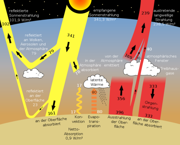 1 Der natürliche Treibhauseffekt Als natürlichen Treibhauseffekt bezeichnet man allgemein den Einfluss der Atmosphäre auf den Wärme und Strahlungshaushalt der Erde Der natürliche Treibhauseffekt ist für unsere Erde von hoher Bedeutung Die durchschnittliche Temperatur an der Erdoberfläche beträgt 15°C Doch ohne den natürlichen. Natürlicher und anthropogener Treibhauseffekt Ursachen und Auswirkungen Other title Effet de serre naturel et anthropique (fr) Author KUTTLER, W;. Info 01 Natürlicher und anthropogener Treibhauseffekt Der Metereologe Mojib Latif erläutert die Funktionsweise des Treibhauseffektes und beschreibt die Folgen einer zusätzlichen Erderwärmung Bei einer Erde ohne Atmosphäre wäre die Oberflächentemperatur ausschließlich durch die Bilanz zwischen eingestrahlter Sonnenenergie und der vom Boden abgestrahlten Wärme(Infrarot)Strahlung festgelegt.