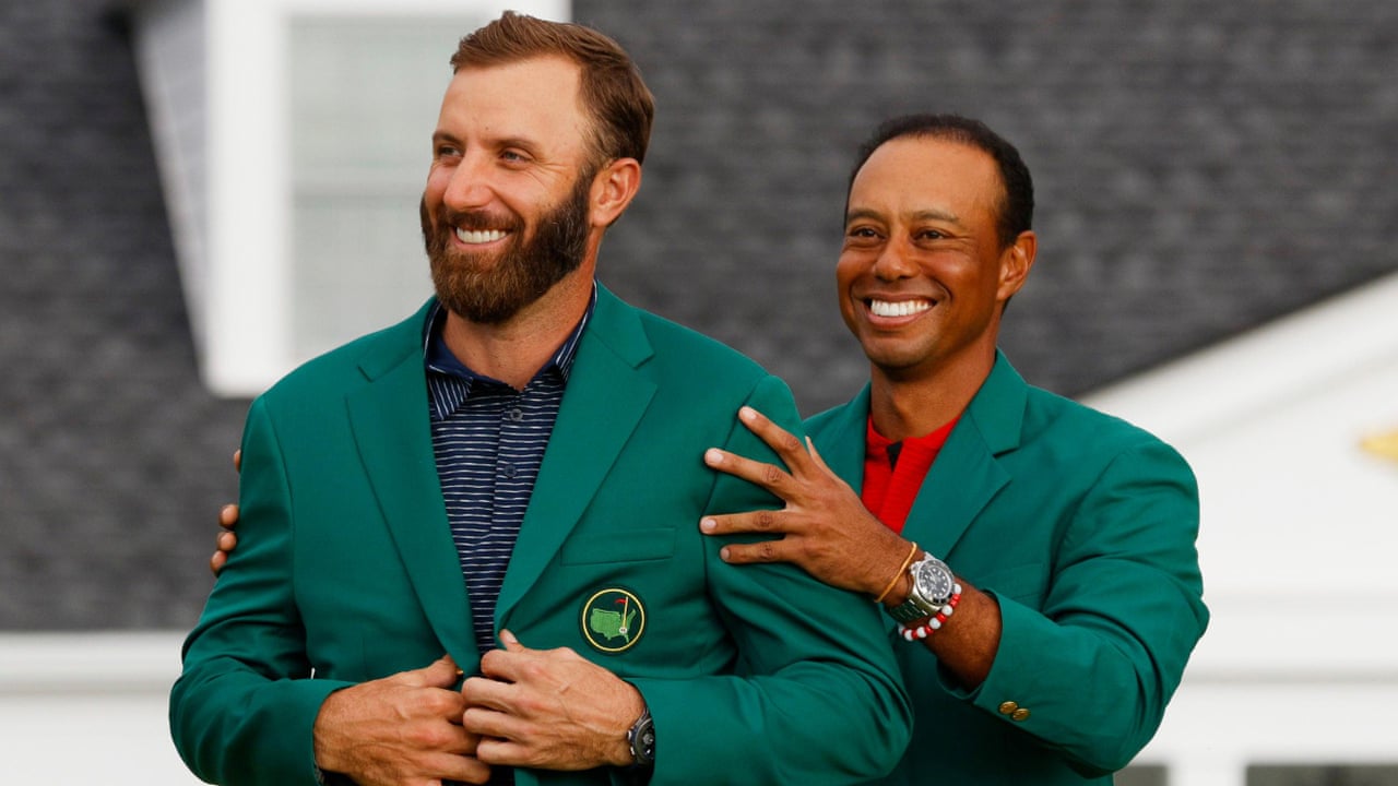 Awesome And Unbelievable Dustin Johnson Receives Green Jacket From Tiger Woods Video Sport The Guardian