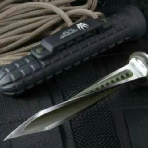 The Microtech Jagdkommando is a unique knife that has been milled from a solid piece of stainless steel!. The Microtech Jagdkommando is a devastating fixed dagger with a " overall Length The blade is 7" of sharpened 6AL4V titanium with a bead blast finish and grooved triple edge twisted dagger blade with drilled hole design The bead blasted waffle design 6061T6 aircraft grade aluminum hollow handle and threaded end cap. The hollow handle has a waffle texture that twists, mirroring the blade motif Threaded end cap with lanyard hole To house the blade, the Mini Jagdkommando has an aluminum "sheath" cover that screws over the blade It includes paracord for neck carry Jagdkommando is the name of the Austrian Armed Special Forces Operations group, an elite group.