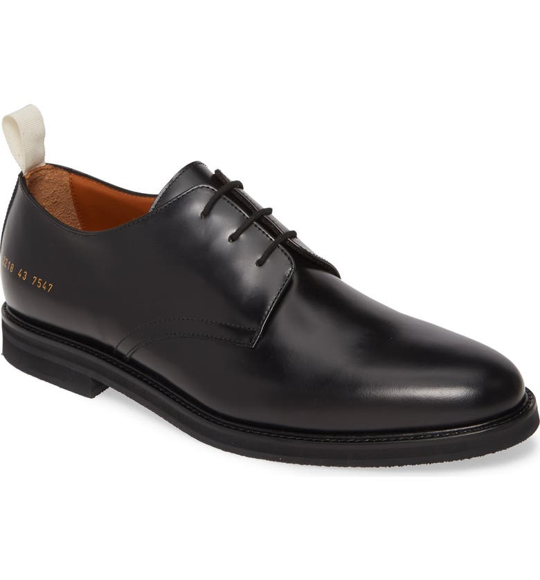 The Common Projects Derby Shine I purchased these just a couple months ago and they’ve broken in comfortably Having purchased the Oxblood color option, these Common Projects Derby Shines have a nice combination of style and material that I didn’t already have in my always growing shoe collection. Free shipping and returns on Common Projects Plain Toe Derby (Men) at Nordstromcom Minimalist detailing brings maximum versatility to a plaintoe derby updated with a comfortable creperubber sole and signature foil stamping on the heel. Common Projects' Derbies can be dressed up or down depending on where you're going They're made from polished black leather and designed in the classic, minimal profile that the brand champions The signature gold serial numbers are an elegant point of differenceWear it with Mr P Jeans id, Mr P Jacket id, Sunspel Polo shirt id, Common Projects Pouch id.