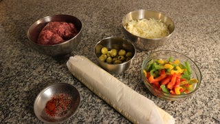 Minced Meat Paprika Pizza Ring With Mozzarella Olives Recipe With Pictures Instructables