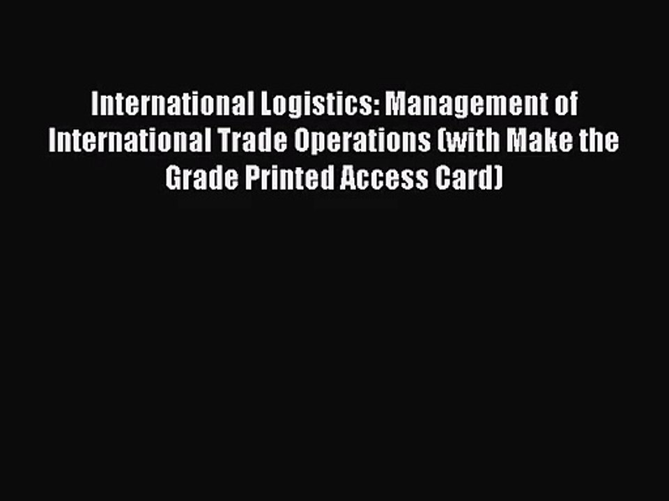 Pdf Download International Logistics Management Of International Trade Operations With Video Dailymotion