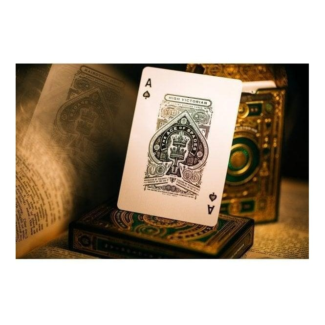 Finely Crafted, Premium Playing Cards For The Inquisitive MindShielded In Gold And Green FoilMade In The Usa On FscCertified Paper Derived From Su. SHIELDED IN GOLD AND GREEN FOIL High Victorian™ Playing Cards were inspired by the intricate, breathtaking style of the Victorian era Every element was designed from scratch with painstaking, relentless attention to detailILLUSTRATED IN THE UNITED KINGDOM Every single playing card within the High Victorian deck was designed from scratch even the Aces, Jokers, and court cards exude. High Victorian Playing Cards was inspired by the intricate, breathtaking style of the Victorian era Every element was designed from scratch with painstaking, relentless attention to detail A Closer Look ILLUSTRATED IN THE UNITED KINGDOM Every single playing card within the High Victorian Playing Cards was designed from scratch Even the Aces.