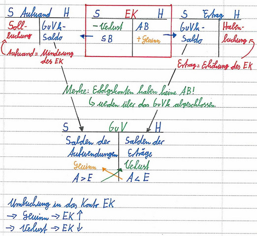 Hallo ) ich bin im ersten Semester und die Buchführung liegt mich noch nicht besonders Ich weiß, dass ich TKonten eröffnen muss und das der SB in die Schlussbilanz übernommen wird, aber auch dass Aufwands und Ertragskonten in die GuV übernommen werden und dieser Wert in die Schlussbilanz (glaube in das Eigenkapital) übertragen wird. Ertragskonten, eben je nachdem, was sie aufnehmen Aufwand oder Ertrag Die Salden der Erfolgskonten gehen in die GuV ein Dabei mindert der Aufwand das Konto Eigenkapital und stellt somit einen Abgang dar auf dem Passivkonto Eigenkapital. Du lernst in diesem Erklärvideo über Aufwand und Ertrag Wie du die Begriffe mit jeweils einem einzigen Satz erklären kannst (das soll dir mal ein Lehrer nachmachen ;)) Was Aufwand und Ertrag mit der doppelten Buchführung zu tun hat (und nix mit der einfachen EinnahmenÜberschussRechnung) Wo die Salden der Aufwands und Ertragskonten.