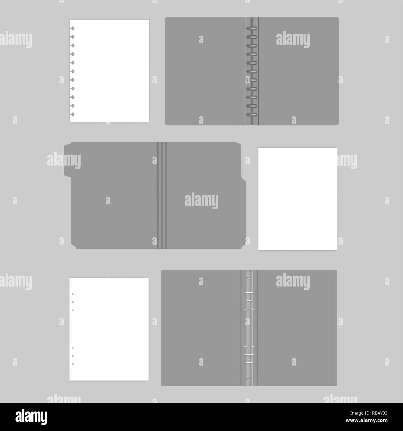 Grau Ordner Offnen Mockup Eingestellt Datei Ordner Mit Register Disc Und Ringbuchern Mit Fuller Papierbogen Mock Up Stock Vektorgrafik Alamy