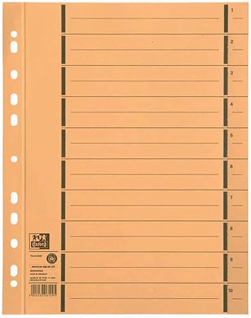 Amazon Com Oxford Trennblatter Aus Recycling Kraftkarton Fur Din 100er Pack Mit Perforation Numeriert 1 10 Mit Linienaufdruck Gelb Trennlaschen Trennblatter Ordner Register Kalender Blauer Engel Office Products