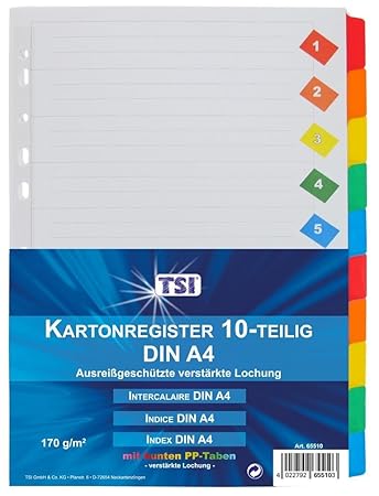 Register Trennblatter Mylar Karton Register Mit 1 10 Auf Farbigen Taben 1 10 Ordner Register Din Buro Schreibwaren Publiciudad Cl