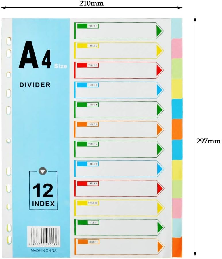 Yotino Trennblatter Fur Ordner Mit 12 Fachern Verschiedene Farben Fur Alle Hochformatordner Sortier Mehrfachlochung Karten Register Buromaterial Ringbucher Zubehor
