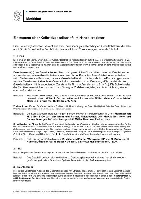 Eintragung Einer Kollektivgesellschaft Im Handelsregister Merkblatt