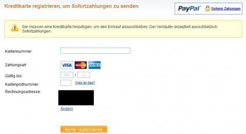 Zur Überprüfung der Kreditkarte muss die Rechnungsadresse auf Ihrer Kreditkarte der Rechnungsadresse auf Ihrer Bestellung entsprechen Bitte vergewissern Sie sich, dass Ihre Rechnungsadresse genau so eingegeben wird, wie sie auf Ihrem Kreditkartenauszug angegeben ist So vermeiden Sie eine Stornierung Ihrer Bestellung. Wenn eine Adresse aber als "Rechnungsadresse" markiert ist, kann man diese erst entfernen oder ändern, nachdem damit verknüpfte Kreditkarten uä gelöscht wurden (ändern geht scheinbar nicht) Dazu geht man in der Leiste de Hauptmenü auf "EBörse" Dort klickt man auf die entsprechende Kreditkarte und wählt unten "Kreditkarte entfernen" aus Danach sollte man in den Einstellungen auch diese Rechnungsadresse löschen können. Die Zahlung per Rechnung ist grundsätzlich nur innerhalb Deutschlands und bis zu einem Warenwert von 600 € möglich Es kann in bestimmten Fällen dazu kommen, dass ihnen der Rechnungskauf bei e.