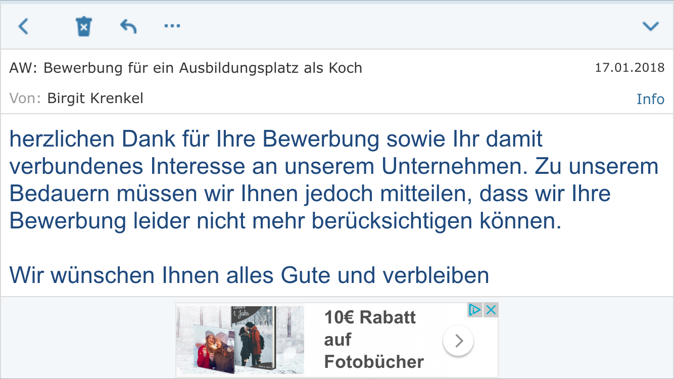 Ist Das Eine Ablehnung Vom Betrieb Ausbildung Bewerbung